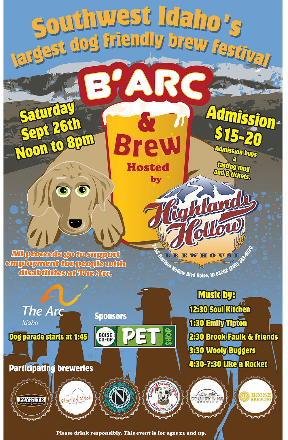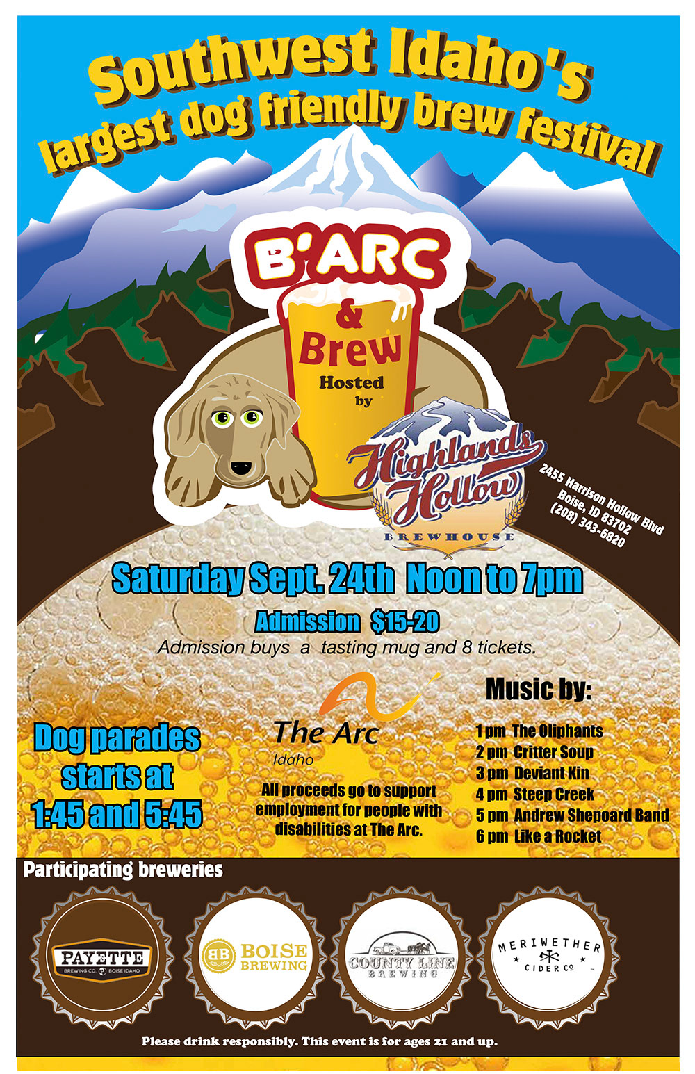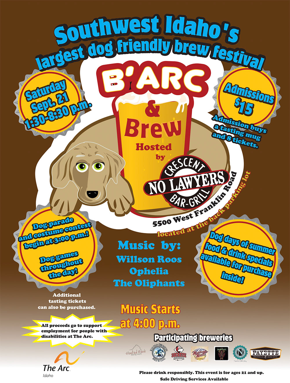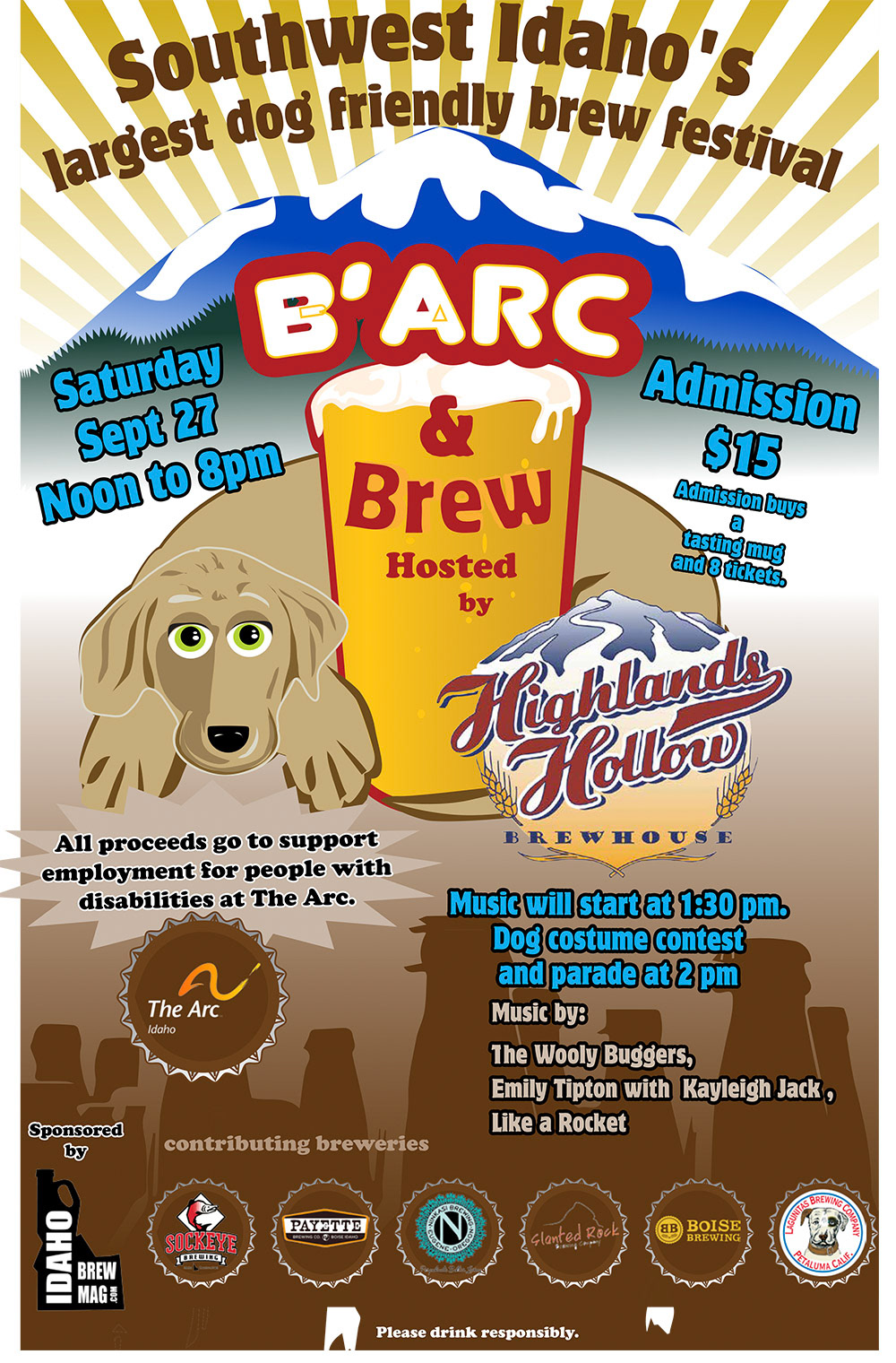 I have been helping the Arc Idaho create several projects. From their Barc bones product label to the logo for their Barc and Brew events. I been ask to create the flyers for the Barc and Brew events for several years.